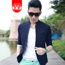 韩版修身休闲短袖小西装中袖立领春夏外套新款 七分袖西装男潮