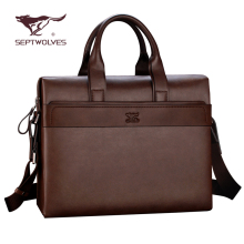 Septwolves/七匹狼男包商务牛皮包横款手提包真皮男士公文电脑包