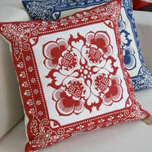 中国风中式剪纸款靠垫套抱枕枕头靠背套家居软装*金玉满堂45、55