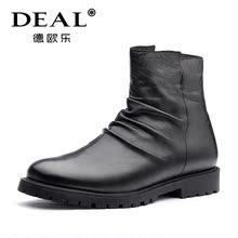 DEAL英伦男靴短靴秋冬褶皱时尚潮靴真皮靴子男圆头拉链牛皮高帮鞋