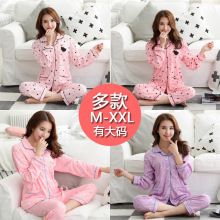 睡衣女春秋季长袖纯棉韩版纽扣开衫加肥大码宽松月子家居服套装夏