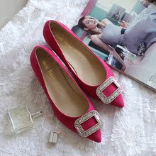 韩国代购秋冬韩版新款高跟尖头水钻方扣粗跟浅口单鞋伴娘婚鞋女鞋
