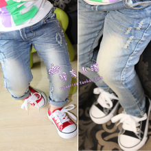 2015新款韩版夏装女童儿童中小童牛仔裤蕾丝破洞修身七分裤中裤