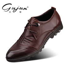 古骏夏季男士商务休闲皮鞋男真皮系带尖头牛皮英伦男鞋单鞋子婚鞋