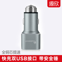源欣车载充电器12/24v汽车安全锤 车充电器点烟器一拖二双usb接口