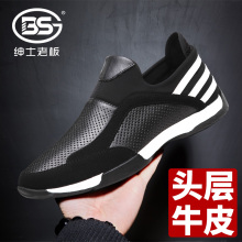 夏季男士透气网面单鞋潮流百搭镂空休闲皮鞋真皮韩版防臭旅游鞋子