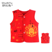 婴儿马甲红色春秋冬男女宝宝百天新生儿满月红色背心马夹纯棉坎肩