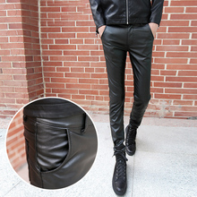 迷彩机车男士PU皮裤2017春秋装修身韩版薄款男裤子黑色小脚铅笔裤