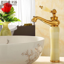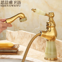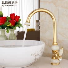 欧式天然玉石全铜台上面盆冷热水龙头厨房水槽可旋转金色仿古龙头