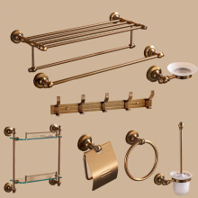 欧式镀金全铜浴室五金挂件套装奢华金色挂件仿古浴巾架置物架套餐