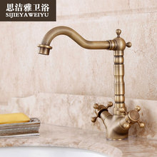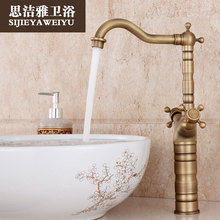 欧式纯铜仿古卫浴面盆洗脸盆水龙头台下盆双把冷热全铜复古水龙头