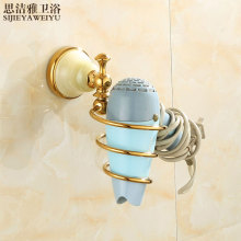 全铜天然玉石浴室吹风机架美式卫生间壁挂金色欧式置物架挂风筒架