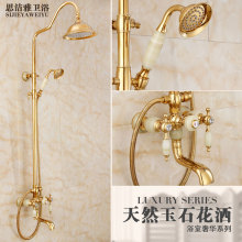 欧式金色天然玉石花洒套装淋浴器旋转升降美式浴室冷热全铜水龙头