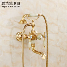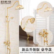 欧式金色天然玉石花洒套装全铜镀金冷热水龙头仿古浴室升降淋浴器