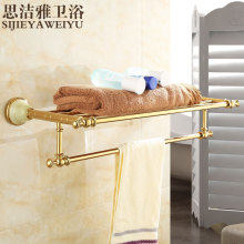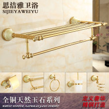 欧式全铜镀金天然玉石毛巾架美式浴室五金挂件套装仿古金色浴巾架