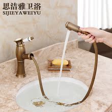 欧式仿古全铜面盆抽拉式水龙头美式复古拉丝台下盆可抽拉台盆龙头