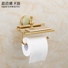 欧式雕花玉石全铜纸巾架浴室五金挂件手机置物厕纸手纸架可免打孔