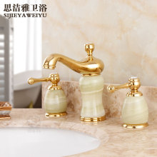 欧式全铜天然玉石三孔冷热水龙头分体大理石面盆金色玫瑰金水龙头