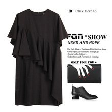 2017欧洲站 新款欧美百搭纯色拼接不规则波浪连衣裙上衣QD393