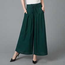 夏季新款中年女装阔脚裤九分裤休闲裤裙裤松紧腰棉麻夏装显瘦裤子