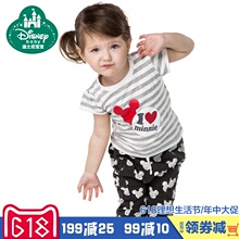 迪士尼童装女童短袖套装3-4岁女宝宝夏装套装纯棉T恤休闲裤两件套