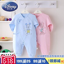 迪士尼新生婴儿连体衣服春秋装宝宝长袖哈衣服纯棉0-3月爬行服春