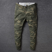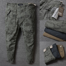 重水洗做旧 微弹力面料 修身小脚工装迷彩 欧美时尚男士休闲长裤