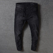 雅痞范 个性磨烂破洞补丁工艺 修身版型 时尚男士补丁牛仔长裤