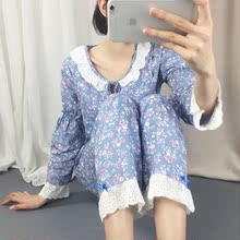 纯棉蕾丝长袖月子服春夏季宽松孕妇睡衣产后喂奶哺乳家居服套装