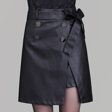 2016秋冬新款PU皮群半身裙高腰a字皮短群女包臀裙显瘦一步裙潮