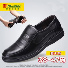 爸爸鞋 中老年男士休闲皮鞋真皮软底大码皮鞋加肥加大45 46 47码