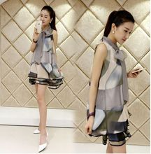 2017夏季新款雪纺欧根纱小清新印花无袖连衣裙韩版宽松A字娃娃裙
