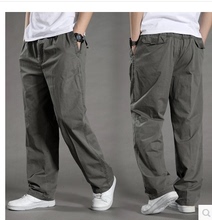 夏季薄款 男装加肥加大码直筒休闲裤纯棉工装裤男宽松长裤肥佬裤