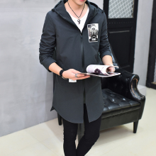 春秋连帽夹克男士中长款外套男韩版修身青年外套新款男装夹克潮