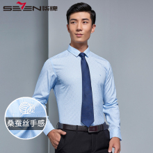 柒牌长袖衬衫男式2017春季新品时尚印花尖领修身棉长袖上衣