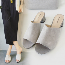 JPAI2017夏季新款真皮凉拖女韩版休闲单鞋粗跟中跟拖鞋女一字拖女