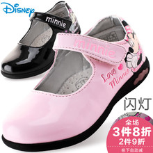 女童皮鞋儿童鞋子 迪士尼春新款韩版闪灯鞋单鞋宝宝公主鞋休闲鞋