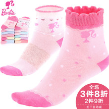 芭比女童袜子夏季网眼薄款精梳棉袜7-9岁公主女孩幼儿童宝宝短袜
