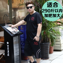 17夏季新款加肥休闲运动套装圆领短T短裤超大码男式套装特大弹力