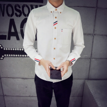 春秋男长袖衬衫青少年纯色牛津纺白衬衣韩版修身大码休闲潮流男装