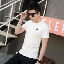 夏季男装青少年印花短袖t恤白色修身韩版圆领上衣服半袖男夏潮流