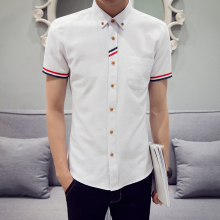 男衬衫短袖修身韩版休闲纯色日系衬衣男青年时尚半袖白色男士衬衫