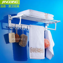 太空铝卫浴挂件双层毛巾架折叠浴巾架浴室卫生间置物架加厚带挂钩