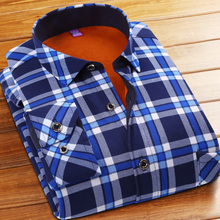 加绒加厚格子衬衫 男士长袖保暖衬衣男冬装外套上衣冬季男装衬衫H