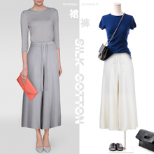 一路走一路歌!春夏新款通勤简约真丝棉针织阔腿裤长裤女宽松裙裤