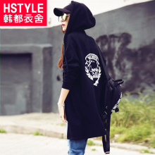 韩版韩都衣舍2016秋装新品加绒开衫中长款卫衣拉链连帽宽松女字母
