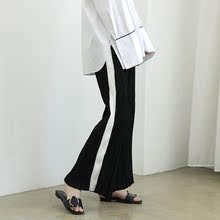 NAMIUS 春季新款韩版高腰女式休闲裤撞色拼接宽松百褶阔腿裤女裤