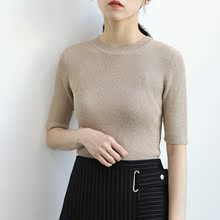 NAMIUS 韩版新款百搭通勤圆领修身五分袖螺纹弹力显瘦针织上衣女