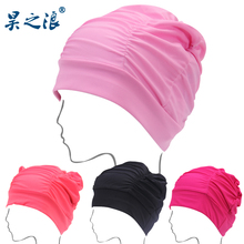 韩国时尚纯色成人女士大号护耳布泳帽舒适褶皱长发粉色温泉游泳帽