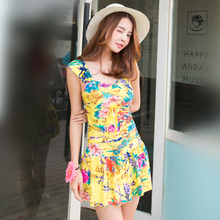 韩国学生连体裙式泳衣女保守小胸聚拢显瘦泳装遮肚平角游泳衣